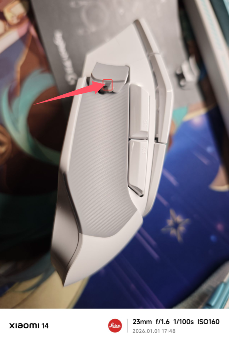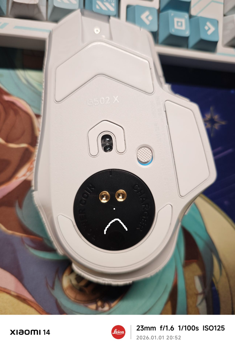 G502X的底盖不能直接掀开,取而代之的是一块磁吸的圆形盖子,向下按•••处便可以轻易取下,下面是个小型收纳仓。